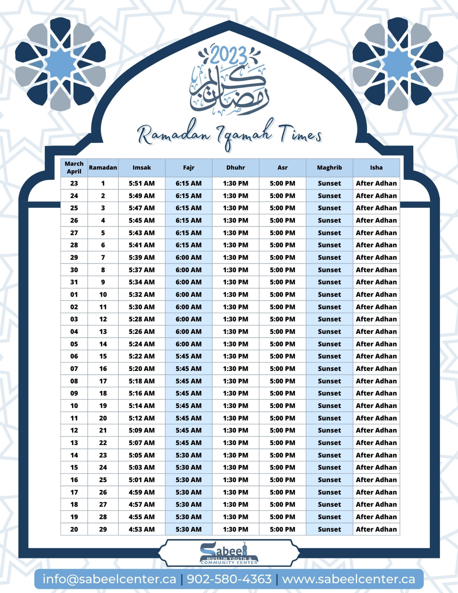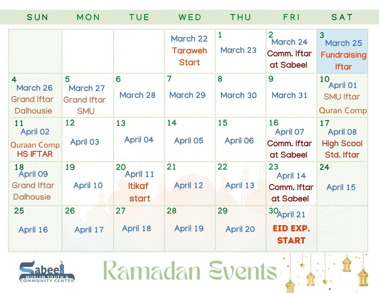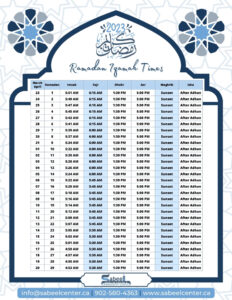 This year we’d like to have you experience Ramadan at Sabeel! Alhamdulilah it is that time of year again. Ramadan is upon us and we couldn’t be happier and blessed to be able to take part in this amazing opportunity and Sabeel Community Center in Bedford, Nova Scotia is excited to invite you to be a part of this joyous and spiritual occasion.